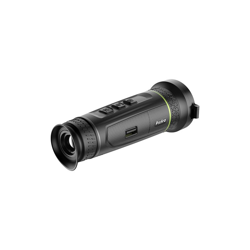 The Pixfra SIRIUS S650 18MK Thermal Imaging Monocular features a 640×512 thermal sensor with 12μm pixel size and 18mK NETD sensitivity. It is an F1.0 aperture lens that enhances light capture, enabling precise thermal detection in low-visibility scenarios. The Pixfra Sirius S650 thermal monocular is designed with a lightweight magnesium shell, providing high-quality thermal imaging performance.