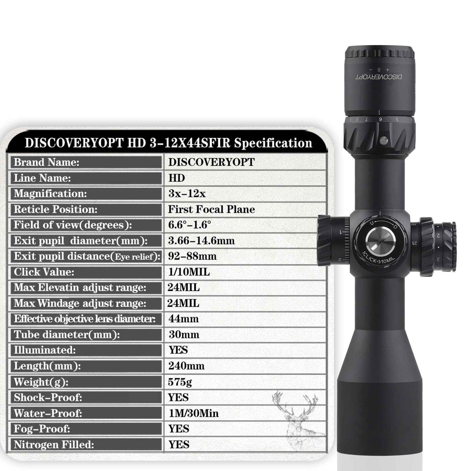 DISCOVERYOPT HD 3-12X44SPR Scope Ring scope mount fit for all 22mm standard Picatinny rails, perfect for 34mm scope tube. DISCOVERYOPT HD 3-12X44SPR Scope One-Piece CNC machined with high precision, resistance to recoil, exceptional at holding zero.CNC machined with high precision, resistance to recoil, exceptional at holding zero. Hard anodized surface starch and weather resistant, Anti-scratch.