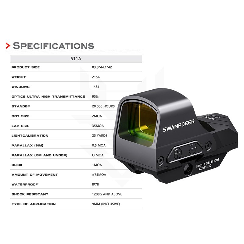 SWAMPDEER HD 511A Red Dot Product Features: