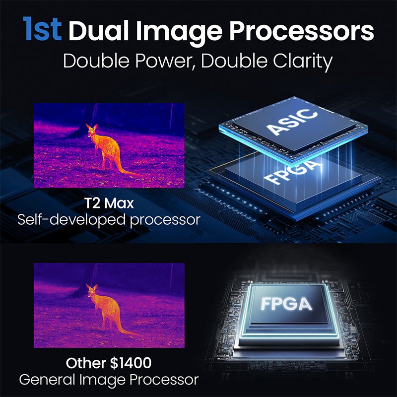 The Thermal Master T2 MAX Thermal Camera is a breakthrough in nocturnal thermal imaging, delivering a 1,600-yard detection range for long-range hunting or surveillance. Featuring a 15mm thermal sensor, the Thermal Master T2 MAX Thermal Camera captures razor-sharp heat signatures in total darkness.
